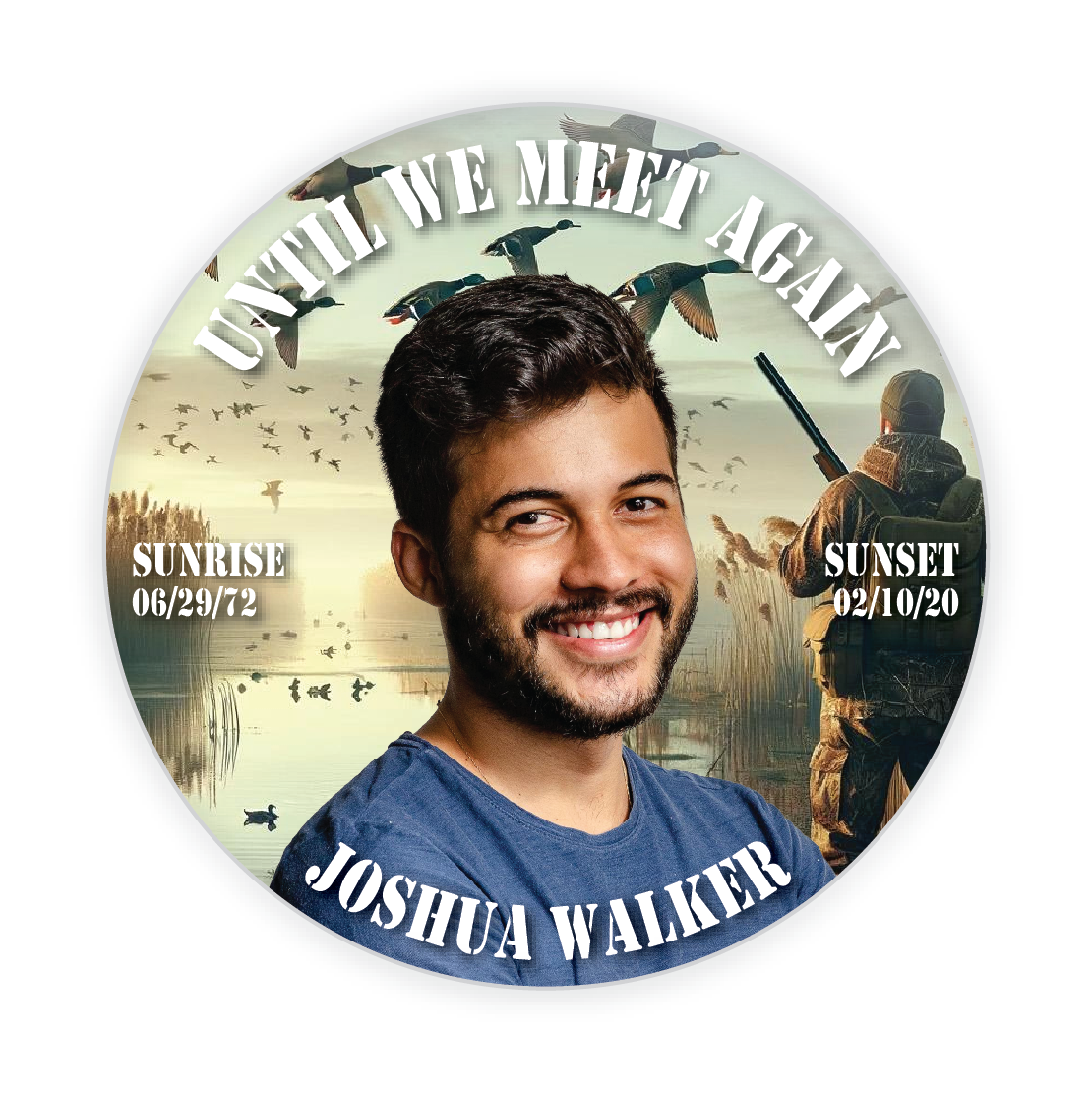 Celebrate the life of your loved one with our Custom Memorial Button with Duck Hunting Background, a tribute designed for hunting enthusiasts. This button is fully customizable with a photo and name, making it a meaningful keepsake. Whether worn at a memorial service or displayed as a personal tribute, it’s the perfect way to honor someone who loved the sport of hunting.