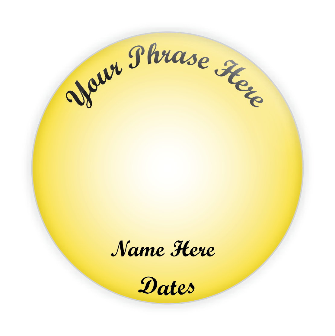 Create a lasting tribute with the Yellow Background Memorial Button – order today to personalize your keepsake.